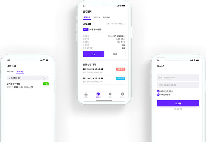 야외교육, 강의실 이동 시에도 제약없이 위치인증기능을 사용 가능합니다.